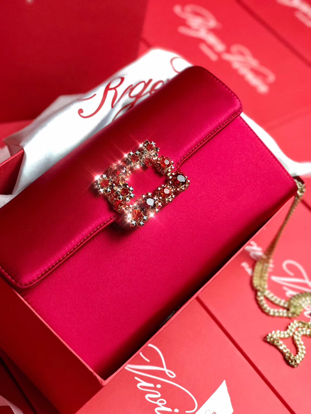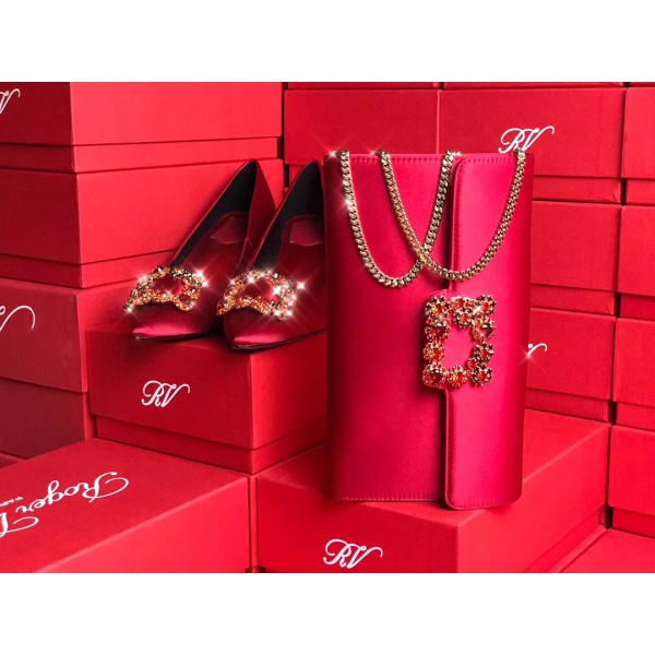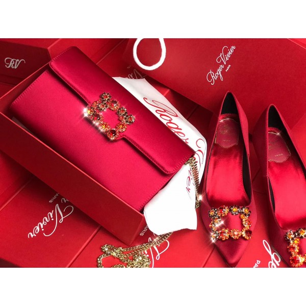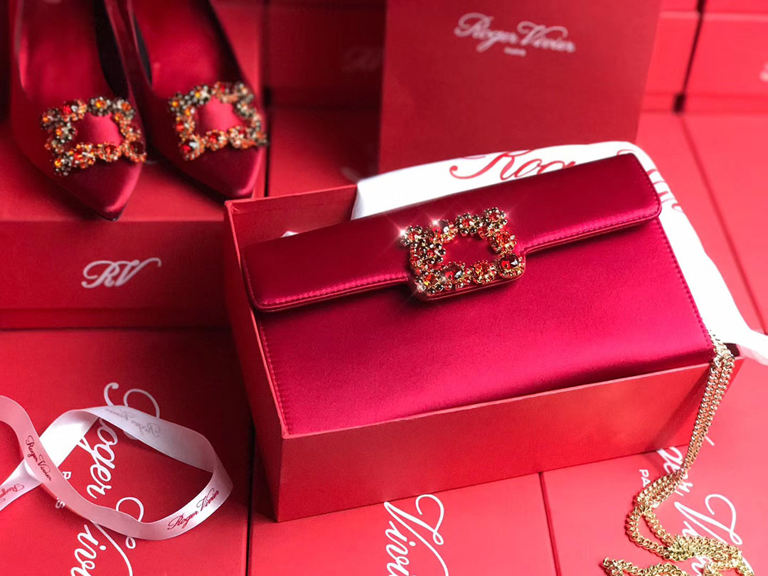 로저비비에 플라워 새틴 클러치&숄더 24CM R30440
