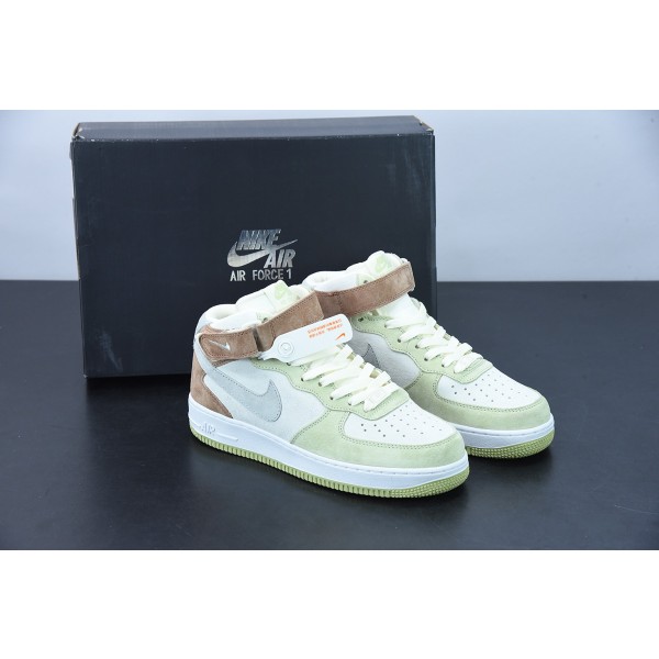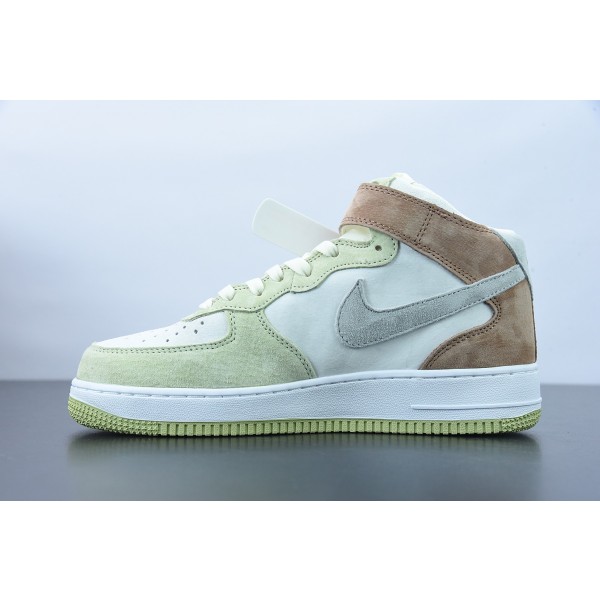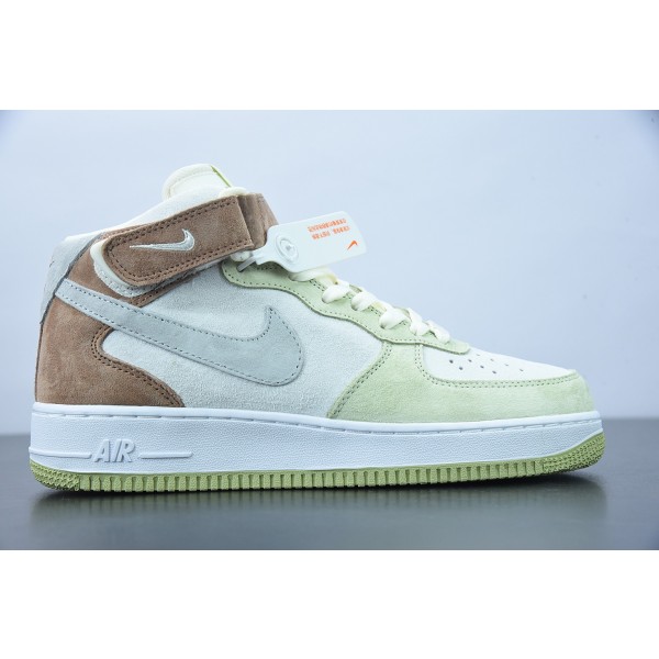 Nk AF 1 미드 07 라이트 그린 그레이 컬러 매칭 미드 탑 에어 포스 1 캐주얼 스니커즈 AL6896-558 사이즈: 36-44
