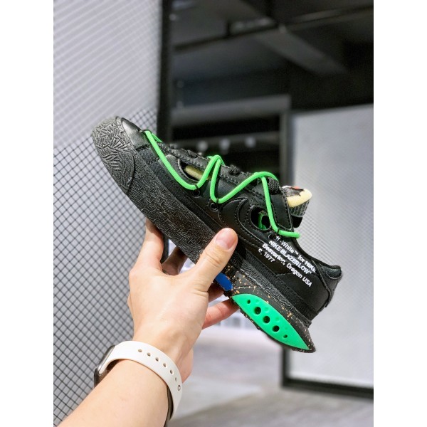 오프화이트엑스나이키블레이저로우 트레일블레이저 블랙 그린 디스트럭티드 아이템: DH7863-001