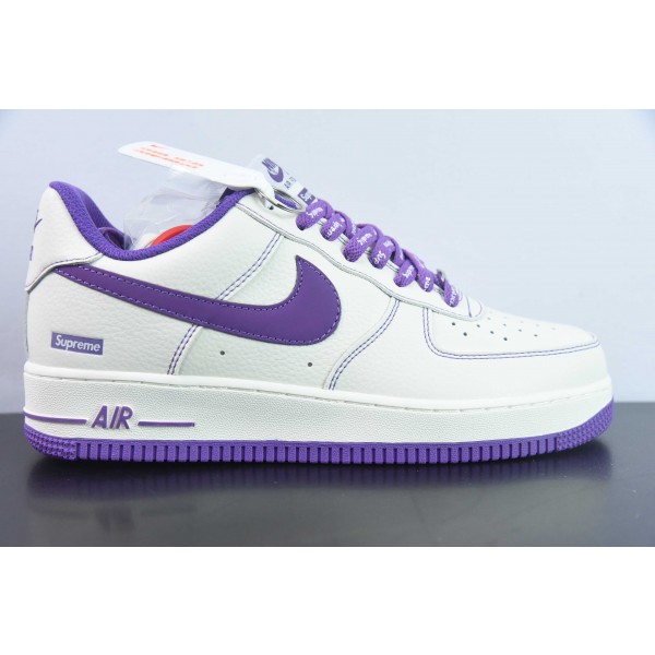 슈프림 x 나이키 에어 포스 1 07 로우 슈프림 에어 포스 원 클래식 로우탑 백 캐주얼 트레이너 리치 레더 베이지 딥 퍼플 Sup SU0220-012 사이즈: 36-44 45