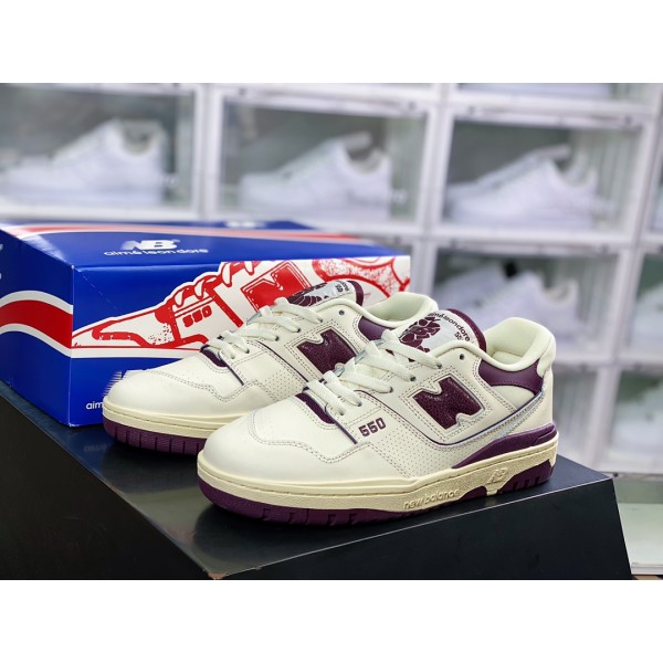 뉴발란스 농구 유니폼 시리즈 클래식 레트로 로우탑 캐주얼 농구화 “가죽 밀크 화이트 딥 그레이프 퍼플 BB550AR1