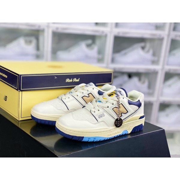 리치 폴 x NB BB550 시리즈 클래식 레트로 로우탑 캐주얼 스포츠 농구 보드 슈즈 레더 베이지 네이비 라이트 옐로우 BB550R