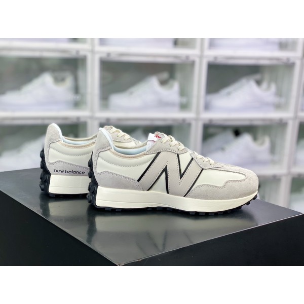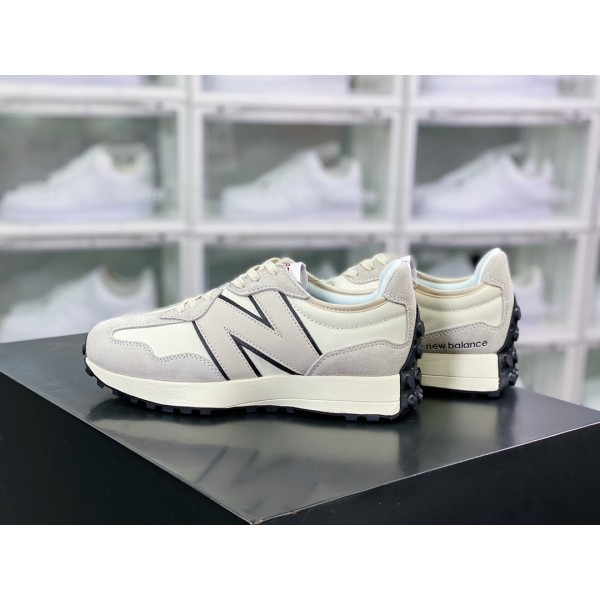 뉴발란스 MS327 로우탑 레트로 캐주얼 스포츠 조거 화이트와 블랙 트리밍 가죽 라이트 그레이 MS327RF1