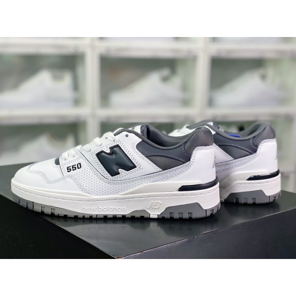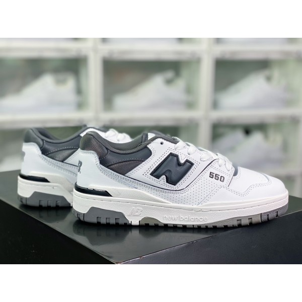 NB 뉴발란스 BB550 시리즈 클래식 레트로 로우 탑 캐주얼 스포츠 농구 보드 슈즈 “가죽 화이트 시멘트 다크 그레이 블랙 BB550WTG 사이즈: