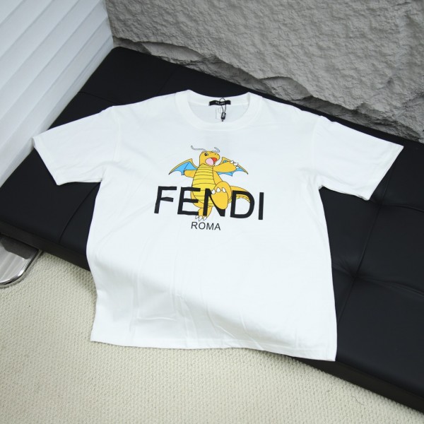 펜디 펜디 2025FW 공룡 레터 프린트 반팔 티셔츠! 스타일 번호: FEN013