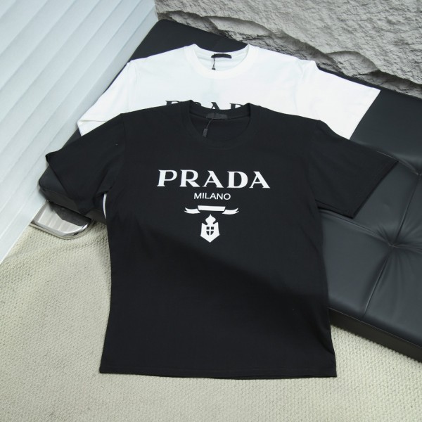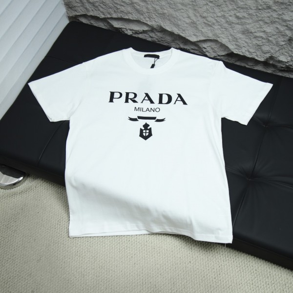2025s스프링 신상 프라다/프라다 백 라운드넥 반팔 티셔츠 모델 번호: PRA011