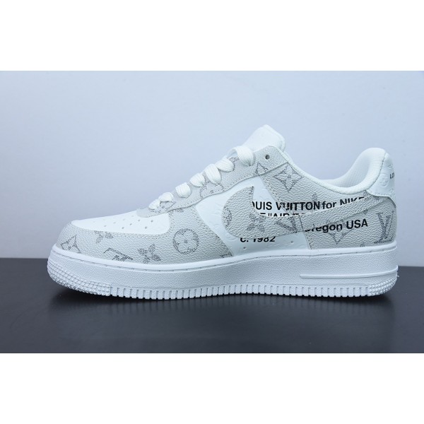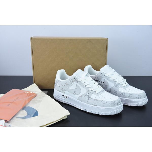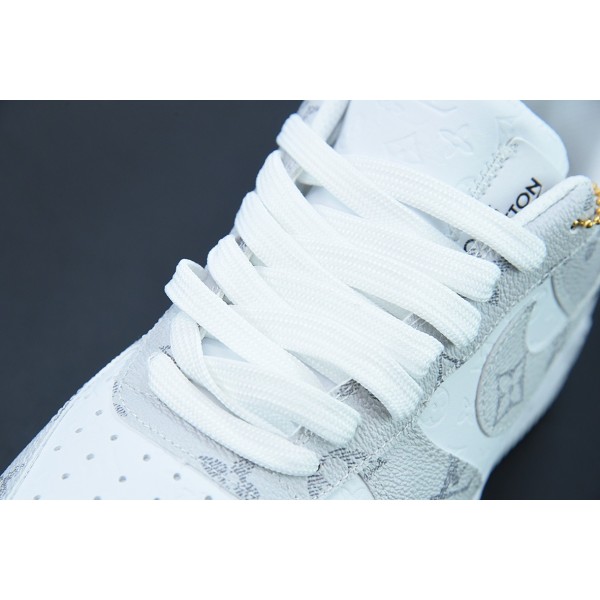 루이 비통 x 에어 포스 107 LV8 로우 화이트/그레이/LV 모노그램 에어 포스 1 화이트 라이트 그레이 LV 엠보싱 올드 플라워 아이템 번호: LD4631-201 사이즈: 36-44