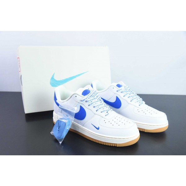 나이키 에어 포스 1 AF1 에어 포스 1 / 로우탑 화이트 및 블루 생고무 밑창 자수 스몰 라벨 품목 번호: -764 사이즈: 36-44